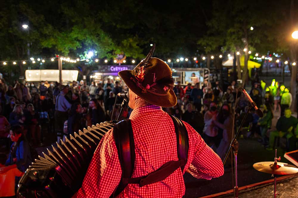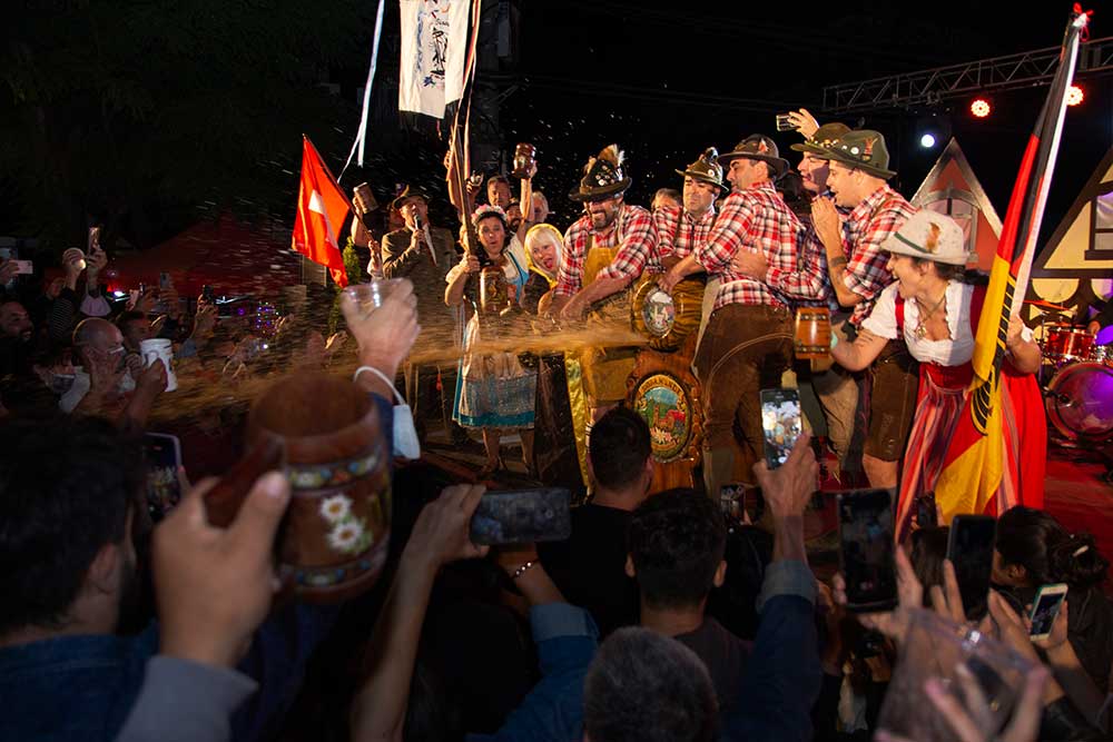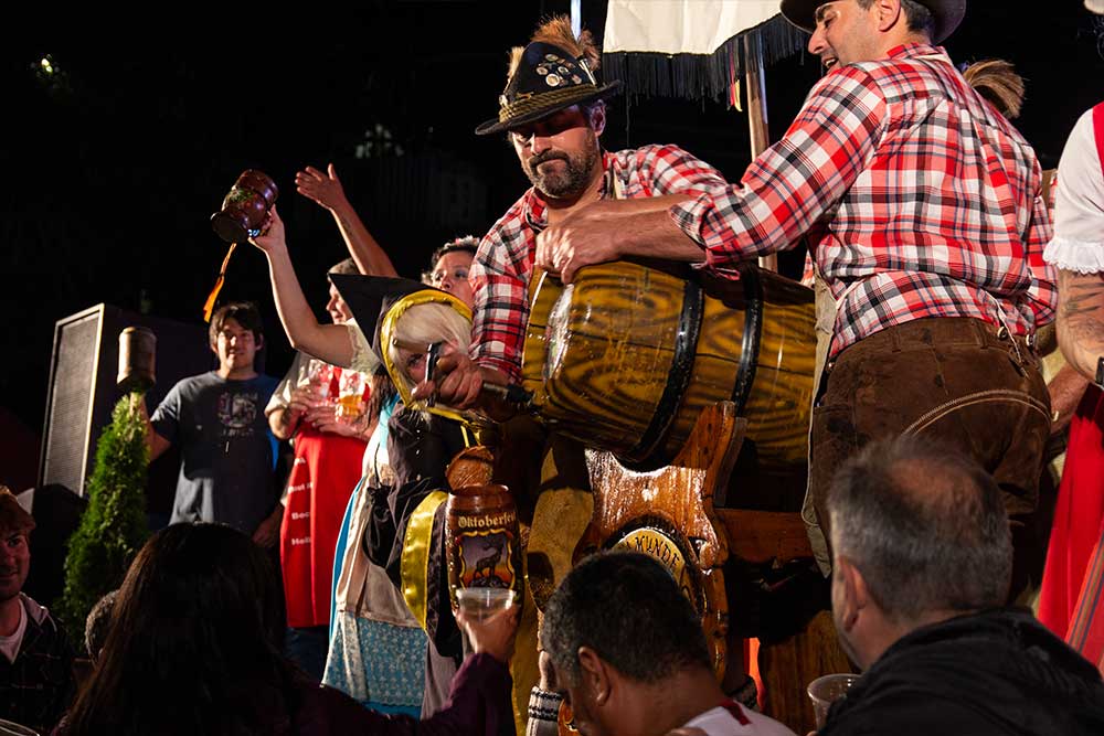 Las instituciones y asociaciones participan con los puestos de gastronomía, hay sabores que representan distintos países, pero sin duda el protagonismo lo tienen los aromas centroeuropeos: un típico plato alemán es probado por primera vez o repetido por quienes son asiduos visitantes y se acompaña con la cerveza artesanal. No pueden faltar las ceremonias del espiche de barril de cerveza, y el reparto de bretzel del Monje Negro (personaje de la Fiesta Nacional de la Cerveza.